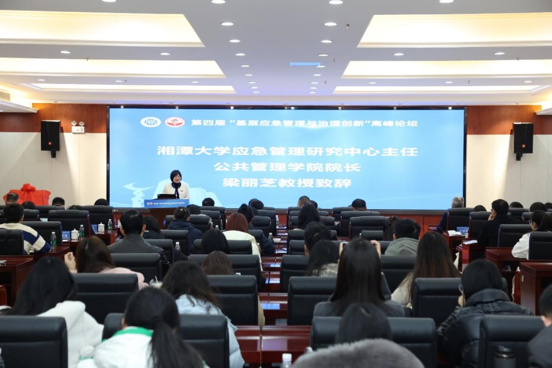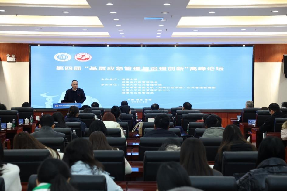 12月14日,第四届“基层应急管理与治理创新”高峰论坛在我校举行,湘潭大学党委委员、副校长刘中望,中国行政管理学会副秘书长、中国行政管理杂志社社长张定安,湘潭市应急管理局党委书记、局长席晓刚,中共湖南省委党校公共管理教研部主任李礼,院长梁丽芝、副院长谭九生、院党委委员刘超等领导和嘉宾出席开幕式。来自中国行政管理学会、北京大学、清华大学、中国人民大学、北京航空航天大学、上海交通大学、武汉大学、四川大学、中南大学、华南理工大学、西北大学、集美大学、中国地质大学(武汉)、南京信息工程大学、中共浙江省委党校(浙江行政学院)、湖南省委党校(湖南行政学院)等单位的专家学者及优秀青年博士100余人参加会议,开幕式由院党委书记易臣何主持。