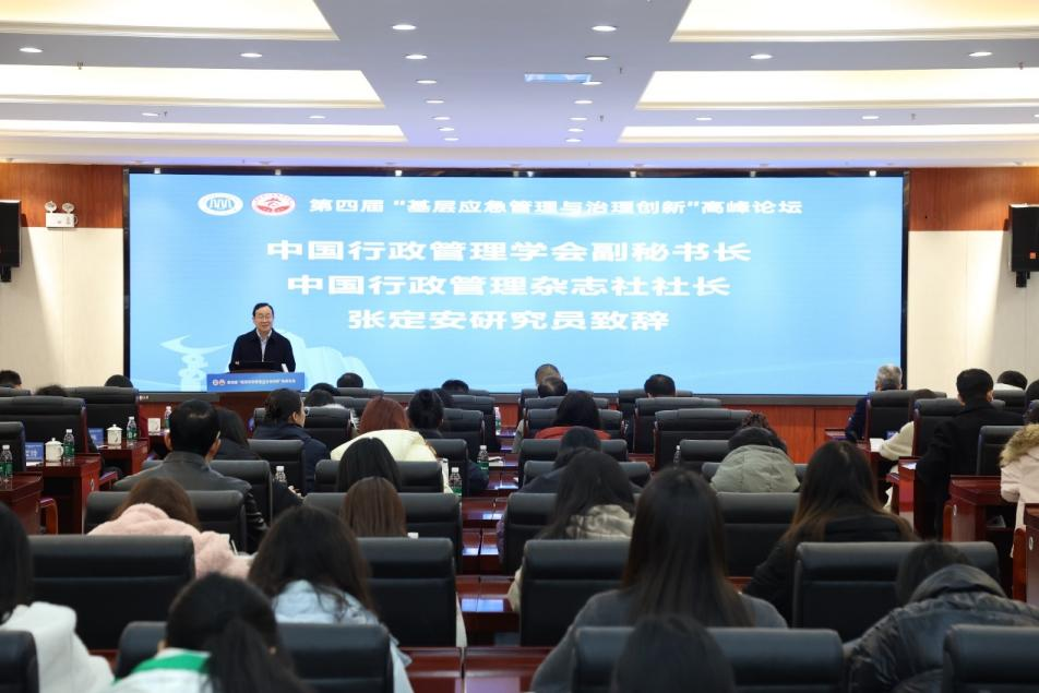 中国行政管理学会副秘书长、中国行政管理杂志社社长张定安研究员代表中国行政管理学会对高峰论坛顺利召开表示祝贺,指出该论坛展现了当代应急管理研究的新气象、新担当、新作为。